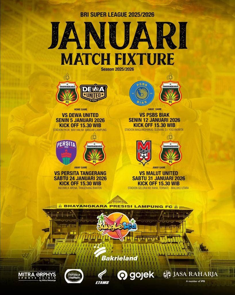 Setelah resmi memindahkan markasnya ke Bandar Lampung, tim asuhan Paul Munster ini dijadwalkan melakoni empat pertandingan krusial sepanjang bulan Januari. Laga-laga ini akan menjadi ujian konsistensi bagi Dendy Sulistyawan dan kawan-kawan untuk memperbaiki posisi mereka di klasemen sementara.